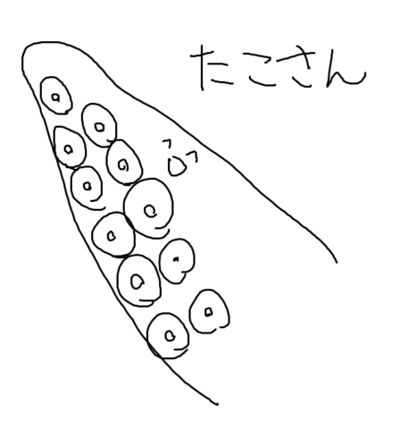 イカさんの吸盤は白くてつるっとしてますが、タコさんの吸盤がついてる足めっちゃ気持ち悪いですよ。美味しいけど。